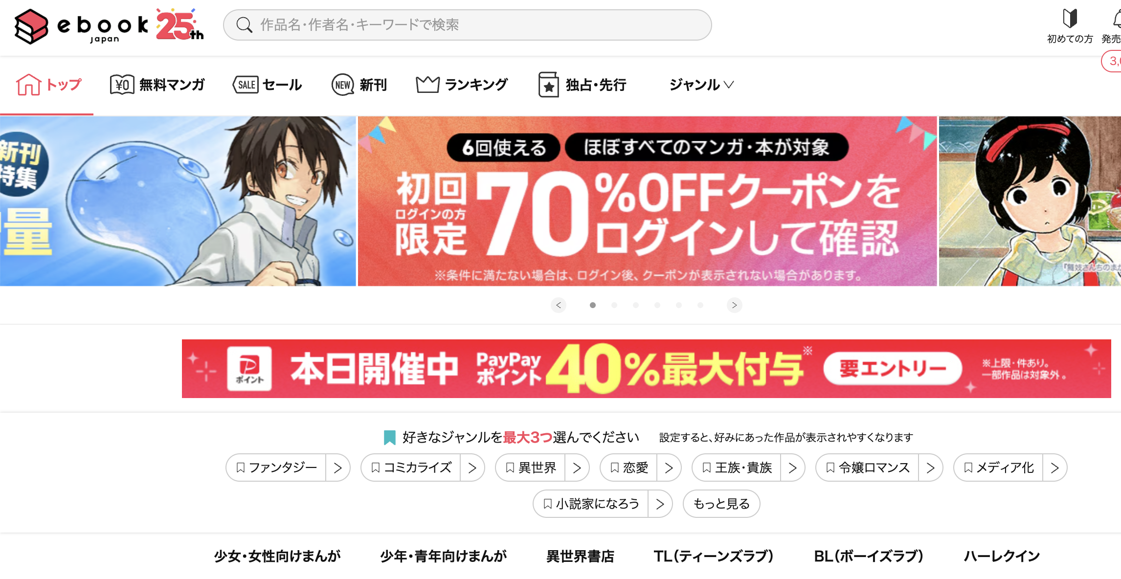 ebookjapanも70%クーポンをもらえるんだね?